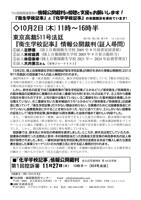 ■『衛生学校記事』情報公開裁判 東京高等裁判所 第7民事部
